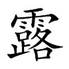 [①][lù][lòu][《廣韻》洛故切,去暮,來。](1)夜晚或清晨近地面的水汽遇冷凝结于物体。(如草木土石)上的水珠。通称露水。(2)庇覆,滋润。(3)(或读lòu)显露;暴露。(4)泄露;败露。(5)宣布;揭露。(6)彰著。(7)破败;败坏。(8)羸弱;瘦弱。(9)酒的代称。(10)用花、叶、果子等蒸馏成的饮料,或在蒸馏液中加入果汁等制成的饮料。(11)俄罗斯旧译露西亚的简称。(12)通“輅”。古帝王所乘之车。(13)通“路”。参见“露門”。(14)姓。