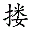 [①][lōu][《廣韻》落侯切,平侯,來。][《廣韻》力朱切,平虞,來。]“搂1”的繁体字。(1)挟持;拉。(2)把东西向自己面前聚集。(3)指向自己的方向拨,扳。(4)搜刮。(5)见“摟搜”。(6)招揽。参见“摟包”。(7)撩;挽。(8)抚琴的指法之一。(9)核算。参见“摟算”、“摟賬”。(10)锄地。[②][lǒu][《正字通》郎斗切]“搂2”的繁体字。(1)搂抱,用胳膊拢着。(2)用为量词。