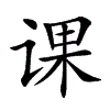 [①][kè][《廣韻》苦卧切,去過,溪。][《廣韻》苦禾切,平戈,溪。]“课1”的繁体字。(1)检验;试用。(2)考核;考查。(3)评判等次;考试评定。(4)督促。(5)索取;要求。(6)引申为推求。参见“課文”。(7)谓致力于,从事。(8)征收或交纳赋税。(9)赋税;租税。(10)计算。(11)讲习;学习。(12)功课,作业。(13)教学的科目。(14)教学的时间单位。(15)教科书根据课时而分的段落。(16)有计划的分段教学。(17)占卜的一种。(18)旧时某些机关、学校、工厂等分设的行政单位。(19)同“騍”。母马。参见“課馬”。(20)用同“窠”。巢。(21)用同“錁”。参见“課銀”。(22)用同“嗑”。参见“課牙”。