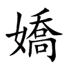 [①][jiāo][《廣韻》舉喬切,平宵,見。][《廣韻》巨嬌切,平宵,羣。][《廣韻》居夭切,上小,見。]“娇1”的繁体字。(1)艳丽。(2)妩媚可爱。(3)困倦。(4)谓声音细嫩、清润。(5)轻柔。(6)指年轻女子;美女。(7)爱;宠爱。(8)谓过分宠爱。参见“嬌生慣養”。(9)撒娇。(10)娇气。(11)通“驕”。参见“嬌婦”。(12)通“驍”。古代投壶,矢自壶中跃出复还,称之为骁。