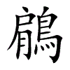音堅。鶙鵳,鷂屬。《廣雅》鵳,鷤也。《集韻》鶙鵳,鷸子。一曰征鳥。一曰鷹。《禮·月令註》作題肩。