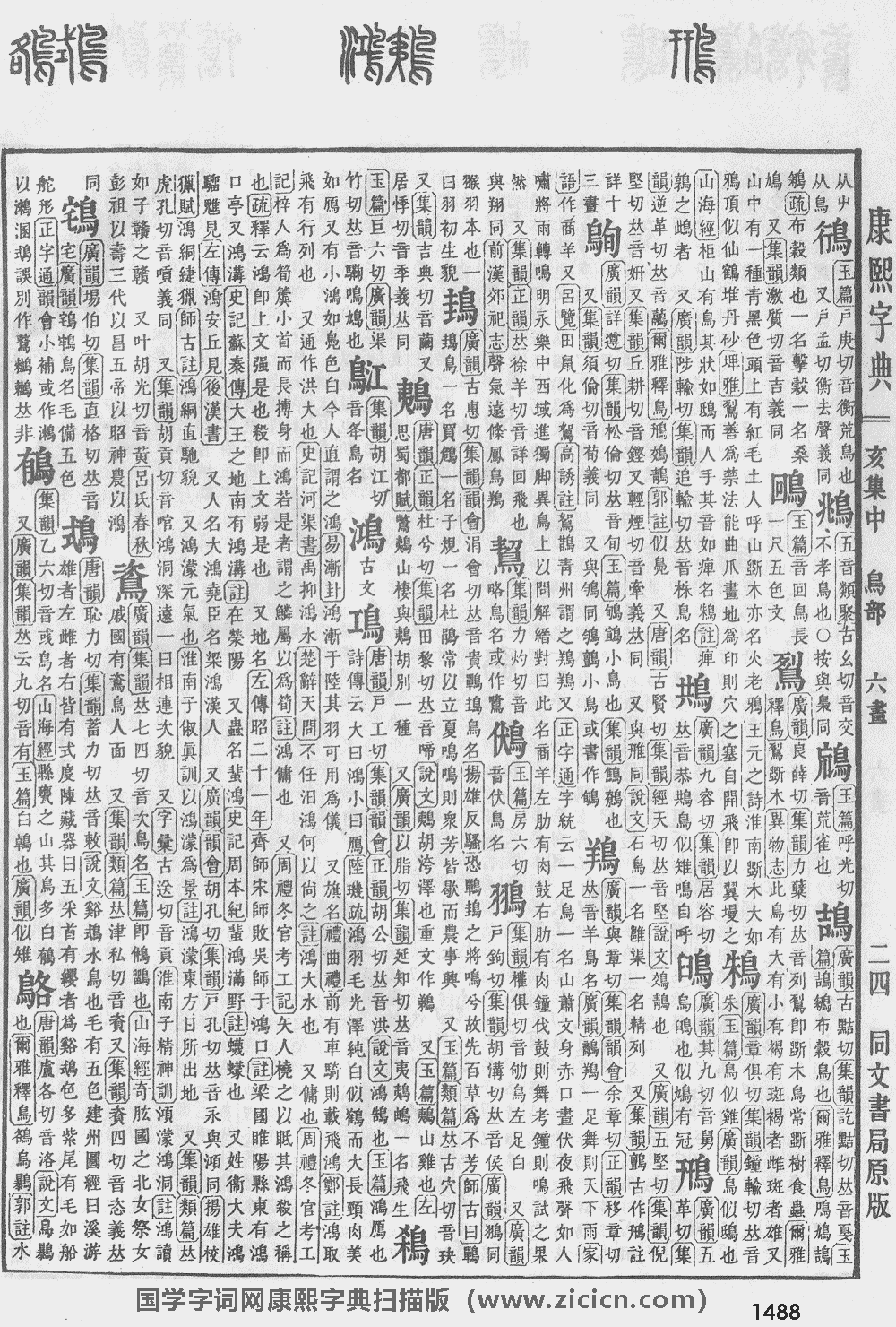 鴴【亥集中】【鳥部】 康熙筆画:17画,部外筆画:6画