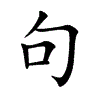 [①][gōu][《廣韻》古侯切,平侯,見。]“區3”的被通假字。“勾1”的古字。(1)弯曲。(2)引申指草木初生拳曲的嫩芽。(3)古代数学名词。参见“句股”。(4)同“鉤”。参见“句戟”、“句繩”。(5)谦虚;恭敬。(6)“句決”的省语。(7)勾销。参见“句抹”、“句除”。(8)勾画。参见“句勒”。(9)查考。(10)搜取;捕捉。(11)逗引;纠结。(12)象声词。参见“句輈”。(13)发声之词。参见“句吴”。(14)通“苟”。苟且。(15)通“苟”。如果。(16)通“後”。时间在后的,与“先”相对。(17)姓。宋有句中正。见《宋史·文苑传三》。[②][gòu][《廣韻》古候切,去候,見。](1)通“彀”。张满弓。(2)见“句2當”。[③][jù][《廣韻》九遇切,去遇,見。](1)句子。(2)下对上陈述之词。(3)量词。用于言语。(4)量词。用于钟点。[④][qú][《廣韻》其俱切,平虞,羣。](1)通“絇”。鞋头的装饰品。(2)通“斪”。见“句4欘”。[⑤][jiǔ]见“句5嬰”。