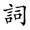 [①][cí][《廣韻》似兹切,平之,邪。]“词1”的繁体字。亦作“1”。(1)言辞;文辞。(2)诉讼。(3)指讼词。(4)借口;理由。(5)语言组织中的基本单位,能独立运用,具有声音、意义和语法功能。(6)旧时亦专指语助词、虚词。(7)文体名。古代乐府诗体的一种。(8)文体名。按谱填写,可合乐歌唱,渊源于南朝,始于唐,盛于宋的一种诗体。亦称“詩餘”、“長短句”。(9)文体名。泛指戏剧、讲唱、歌曲等艺术中的语言、文字部分。(10)通“辭”。告别。(11)通“辭”。违戾。参见“詞向”、“詞乖”。(12)通“嗣”。承继。