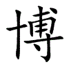 邦入聲。《說文》大通也。从十尃。尃,布也,亦聲。《徐曰》十者,成數也。《玉篇》廣也,通也。《增韻》普也。《荀子·修身篇》多聞曰博。