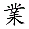 [①][yè][《廣韻》魚怯切,入業,疑。]“业1”的繁体字。(1)版,大版。古代覆在悬挂钟、鼓等乐器架横木上的装饰物,刻如锯齿形,涂以白色。(2)版,大版。筑墙版。(3)版,大版。古代书册之版。(4)版,大版。亦指写字用的业版。(5)学业。(6)基业,功业。(7)家业,产业。(8)事务;职业。(9)成业;使之立业或乐业。(10)以……为业;从事于。(11)创始、开始。(12)继,继承。(13)依次;次序。(14)既,已经。(15)佛教语。梵文karman羯磨的意译。佛教谓业由身、口、意三处发动,分别称身业、口业、意业。业分善、不善、非善非不善三种,一般偏指恶业,孽。它决定在六道中的生死轮回。(16)通“陧”。危,不安。(17)见“業業”。(18)见“業業”、“業峨”。