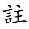 音鑄。《玉篇》疏也,解也。《正韻》訓釋也。《毛詩·序疏》註者,著也。言爲之解說,使其義著明也。《儀禮·士冠禮疏》言註者,註義于經下,若水之注物,亦名爲著。《晉書·向秀傳》始秀欲註《莊子》,嵆康曰:此書詎復須註。《舊唐書·