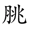 [①][tiǎo][《廣韻》土了切,上篠,透。][《廣韻》吐彫切,平蕭,透。]亦作“脁1”。(1)旧历月底月见于西方。(2)日晦蚀。(3)行疾。(4)盈,有余。[②][chào][《廣韻》丑召切,去,徹。][《集韻》他弔切,去嘯,透。]亦作“脁2”。祭祀。