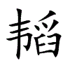 [①][tāo][《廣韻》土刀切,平豪,透。]“綢2”的被通假字。亦作“轁1”。“韬1”的繁体字。亦作“鞱1”。(1)弓袋。(2)纳弓于弓袋。参见“韜弓”。亦指藏刀于刀鞘中。(3)掩藏;敛藏。(4)包容;蕴含。(5)包扎;敛束。(6)牧畜。(7)古兵书有《太公六韬》:文韬、武韬、龙韬、虎韬、豹韬、犬韬。相传为周文王师姜望所撰。后因以借指用兵的谋略。(8)《广雅·释诂三》:“韜,寬也。”引申为宽馀,优长。(9)通“翿”。古代行射礼时用以指挥进退的旗。[②][tào][《集韻》叨号切,去号,透。]“韬2”的繁体字。古代护臂的皮套。
