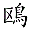 [①][ōu][《廣韻》烏侯切,平侯,影。]亦作“1”。“鸥1”的繁体字。“鴎1”的繁体字。水鸟名。头大,嘴扁平,趾间有蹼,翼长而尖,羽毛多,灰白色。生活在海洋及内陆河川,以鱼类和昆虫等为食。种类繁多。