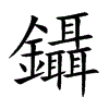 [①][niè][《廣韻》尼輒切,入葉,娘。]“镊1”的繁体字。亦作“錜1”。(1)镊子。(2)用镊子拔除毛发或夹取东西。(3)指理发。参见“鑷工”、“鑷肆”。(4)垂饰。(5)特指缀附于簪钗的垂饰。(6)古代织机上用以提花的部件。一说通“”,古织布机上提花用的竹针。