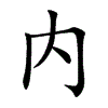 [①][nèi][《廣韻》奴對切,去隊,泥。]亦作“內1”。(1)里面,里头。与“外”相对。(2)指使向内、向里。(3)室,内室。(4)指居屋的正室。(5)帝王所居之处;皇宫。(6)指朝廷。(7)宫门或闺门以内的人和事。(8)指家务。(9)妇女;女色。(10)古代泛称妻妾。后专称妻。(11)称妻家的亲属。参见“内兄”、“内侄”。(12)内心。(13)指内脏。(14)亲近。(15)谓不形于外;暗地里。(16)指正道。佛教徒称佛门之内的为内,佛门之外的为外。(17)返,回头。参见“内顧”。(18)戈戟刃下接柄之处。(19)退。(20)犹中。指五行方位的中央。参见“内色”。[②][nà][《集韻》諾答切,入合,泥。]亦作“內2”。(1)“納”的古字。使进入;放入。(2)“納”的古字。接纳;容纳;釆纳。(3)“納”的古字。迎娶。(4)“納”的古字。交纳;进献。(5)“納”的古字。收藏。(6)“納”的古字。补缀,弥补缝隙。(7)通“肭”。肥。(8)通“訥”。木讷,不善言辞。[③][ruì][《集韻》儒税切,去祭,日。]亦作“內3”。(1)通“汭”。河流弯曲处或会合处。(2)通“枘”。榫头。