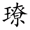 [①][liáo][《廣韻》落蕭切,平蕭,來。][《廣韻》力小切,上小,來。][《廣韻》力弔切,去嘯,來。](1)玉名。(2)同“鐐”。精美的银。