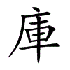 [①][kù][《廣韻》苦故切,去暮,溪。]“库1”的繁体字。(1)储藏战车兵甲的屋舍。(2)泛指贮物的屋舍。(3)监狱。(4)宋时酒肆称库。(5)姓。汉有库钧。见《广韵·去暮》。