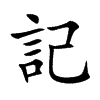 [①][jì][《廣韻》居吏切,去志,見。]“记1”的繁体字。(1)不忘,把印象保持在脑中。(2)记录;载录。(3)公牍;札子。(4)指典籍;著作。(5)文体名。以叙事为主,兼及议论抒情和山川景观的描写。晋陶潜有《桃花源記》。(6)记述或解释典章制度的文字。如《周礼·考工记》、《礼记》、《大戴礼记》。(7)印章;钤记。(8)表记;标志。(9)皮肤上生来就有的深色的斑。(10)动量词。打一下叫打一记。(11)佛教语。佛对弟子和发愿心修行的人,预言其将来成果作佛的事叫“記”。以之授与其人叫“授記”,受者谨领叫“受記”。(12)通“其”。语助词。(13)通“計”。参见“記會”。