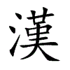 [①][hàn][《廣韻》呼旰切,去翰,曉。]“汉1”的繁体字。(1)水名。汉水,也称汉江,为长江最长的支流。发源于今陕西省宁强县,流经湖北省,在武汉市入长江。(2)天河;银河。(3)男子。(4)方言。称丈夫。(5)契丹统治者对南人的称谓。元代对原在金人统治下的北方汉族人和契丹、女真、高丽等族人亦称汉。(6)古指华夏族、汉族及其活动范围。(7)民族名。汉族。中华民族中人数最多的民族。参见“漢族”。(8)汉语的简称。(9)《汉书》的简称。(10)朝代名。公元前206年刘邦灭秦,前202年称帝,国号汉,建都长安,史称西汉或前汉。公元8年外戚王莽一度称帝,国号新。公元25年刘秀重建汉朝,建都洛阳,史称东汉或後汉。公元220年曹丕称帝,东汉灭亡。整个汉代共历二十四帝,406年。(11)我国古代政权名。(1)三国之一。公元221年,刘备在成都称帝,国号汉。史称蜀、蜀汉。263年亡于魏。(2)十六国之一。公元304年,刘渊起兵,自称汉王。308年,刘渊在平阳称帝。后改国号为赵,史称前赵。(3)十六国之一。公元306年,李雄称帝,建都ㄎ,国号成。338年李寿改国号为汉。史称成汉。347年亡于东晋。(4)五代时的十国之一。公元917年,刘龑在广州称帝,国号越,后改为汉,史称南汉。971年亡于北宋。(5)五代之一。公元947年,刘知远在太原称帝,旋定都汴(今河南省开封市),国号汉。史称後汉。950年亡于後周。(6)五代时的十国之一。公元951年,刘旻在太原称帝,国号汉。史称北汉。979年亡于北宋。(7)五代时十国之一的前蜀(公元907年-925年)曾一度改国号为汉。后仍称蜀。(8)公元1360年,陈友谅在江州(今江西省九江市)称帝,国号汉。不久为朱元璋所灭。(12)地名。汉中的简称。秦置汉中郡,包括今陕西省南部及湖北省西北部。汉仍之。(13)地名。唐代州名。治所雒县,在今四川省广汉县。参阅清顾祖禹《读史方舆纪要·四川二·成都府》。(14)地名。指汉皋山。又称方山、万山,在今湖北省襄阳县西北。(15)地名。汉口或武汉市的省称。(16)姓。参阅《通志·氏族二》。