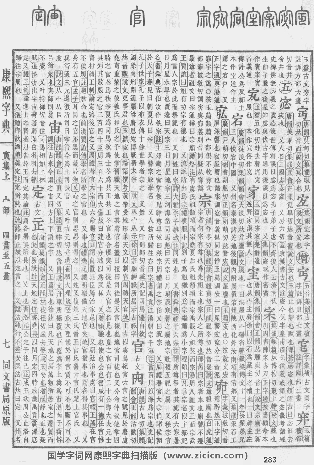 定【寅集上】【宀部】 康熙筆画:8画,部外筆画:5画
