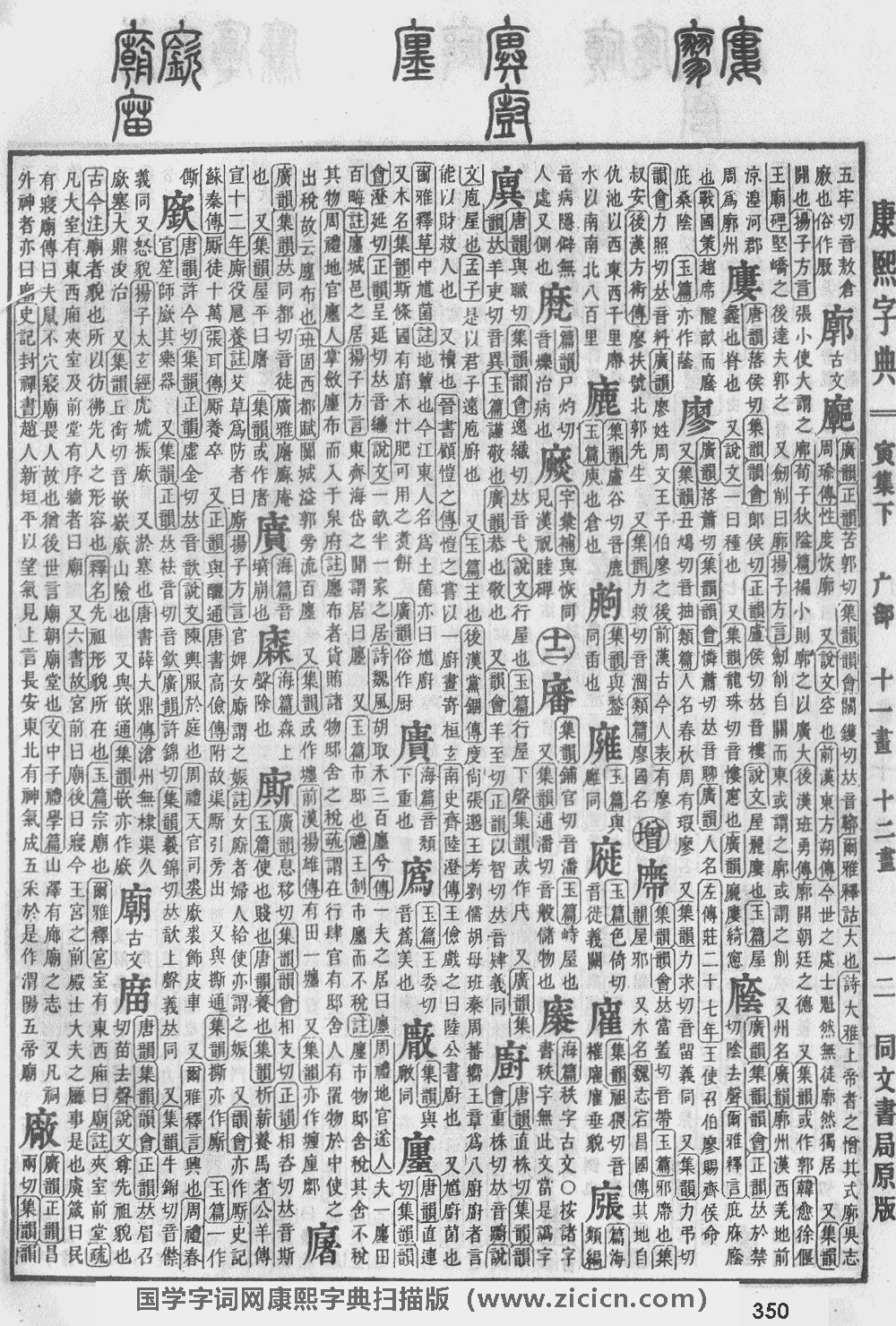 廗【寅集下】【广部】 康熙筆画:14画,部外筆画:11画