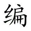[①][biān][《廣韻》卑連切,平仙,幫。][《廣韻》布玄切,平先,幫。][《廣韻》方典切,上銑,幫。]“编1”的繁体字。(1)穿联竹简的皮条或绳子。(2)书籍。(3)书的计数单位。指一部书或书的一部分。(4)顺次排列。(5)指把分散的事物按照一定的条理组织起来。参见“編年”、“編組”。(6)连接。参见“編町”。(7)收列;列入。(8)编辑;创作。(9)编织。(10)编造;捏造。(11)古县名。汉属南郡,在今湖北省南漳县境。见《汉书·地理志上》、北魏郦道元《水经注·漳水》。(12)姓。汉代有编盲意。见《後汉书·方术传下·解奴辜》。[②][biàn][《集韻》婢典切,上銑,並。]“编2”的繁体字。通“辮1”。
