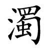 [①][zhuó][《廣韻》直角切,入覺,澄。]“浊1”的繁体字。(1)液体浑浊。与“清”相对。(2)脏;不干净。(3)混乱;昏乱。(4)贪鄙;卑污。(5)暗,昏暗。(6)指天气沉闷。(7)厚重。(8)中国古代音乐术语。指低而长的音。相对于“清”而言。(9)指音质厚重低沉。(10)佛教语。指尘世中的灾业。(11)凡俗,凡庸。参见“濁骨凡胎”、“濁質凡姿”。(12)语音学名词。即浊音。(13)毕星的别名。(14)水名。源出山东省益都县(今青州市)西,北流注入小清河。又名溷水、北阳水。(15)水名。源出甘肃省西和县,今名白水江。(16)水名。古湟水,在今河南省巩县境。(17)水名。今江西省西部的锦江,古又名蜀水。源出湘赣交界处的慈化,注入赣江。(18)水名。古淯水西部支流。疑即今之刁河。源出河南省内乡县西。(19)姓。汉有浊贤。见《汉书·元后传》。