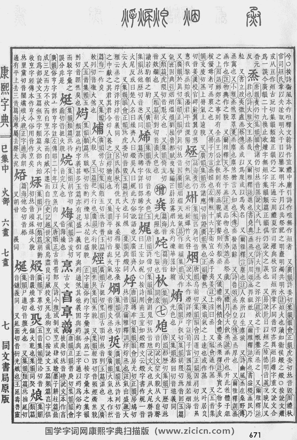 烵【巳集中】【火部】 康熙筆画:11画,部外筆画:7画