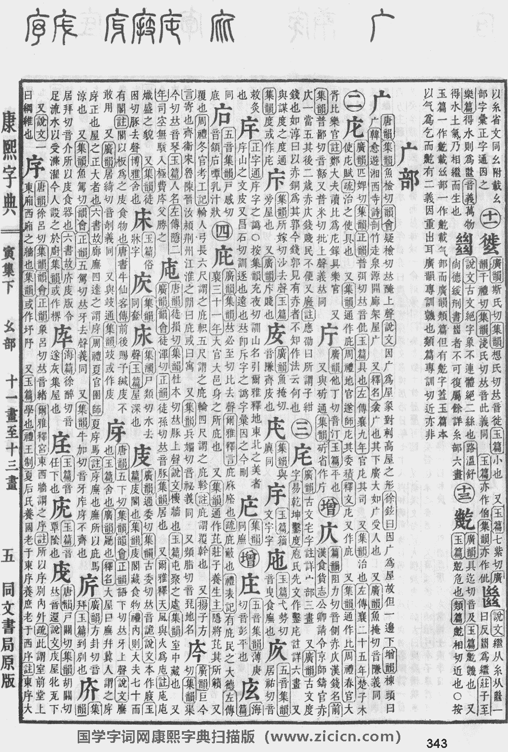 庄【寅集下】【广部】 康熙筆画:6画,部外筆画:3画