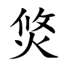 焂【巳集中】【火部】 康熙筆画:11画,部外筆画:7画