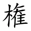 [①][quán]同“權1”。《宋元以来俗字谱》:“權”,《列女传》、《古今杂剧》作“権”。按,亦为“權”的日本用简体汉字。