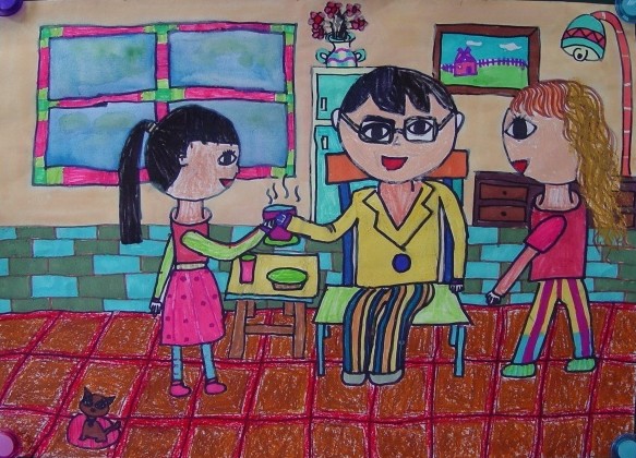 看图写话:给爸爸倒水