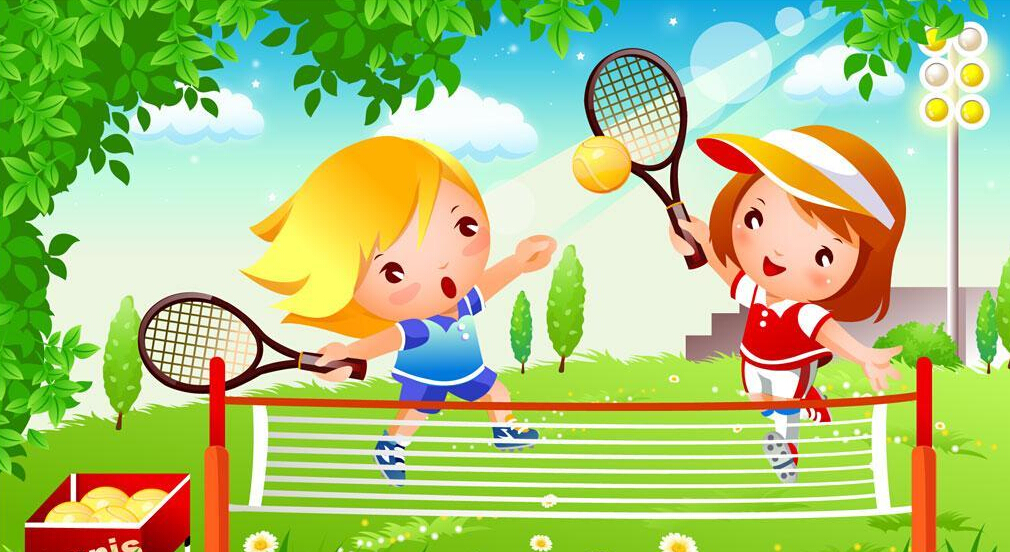 今天天气格外晴朗,小美和小明还有小天,他们来到草坪上玩游戏,他们玩的是网球,相互间传来传去。